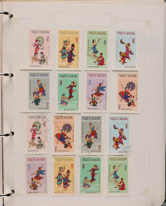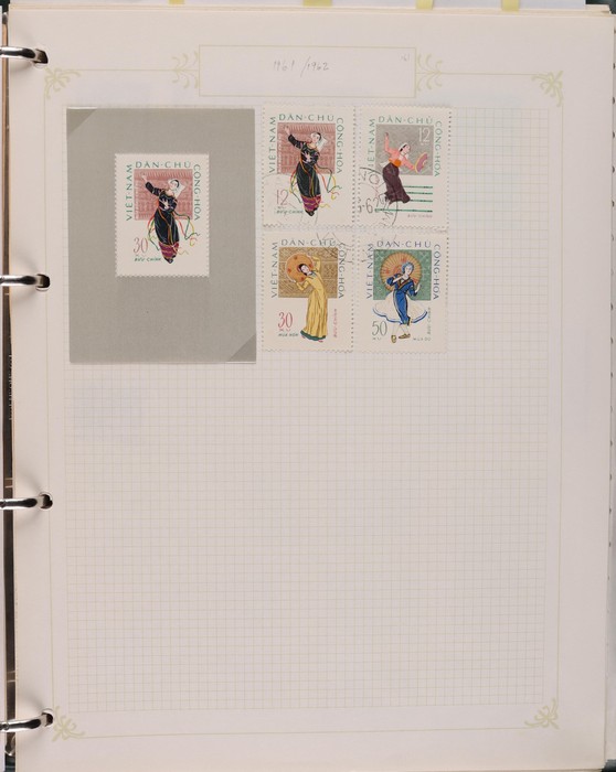 499 imageVietnam North: 1951-2019 collection in green binder, 1951 Ho Chi Minh set M (SG N4-6), plus 100d (3) U. 1954 Victory set, 1954 50d SG N14 U, 1958 Education set, 1961 Space Flight 5 sets inc blks of 4 CTO. 1961 Artists Long Imperf set & M/Sheet. 1962 Folk Dancing set & M/Sheet, 1962 Flower sets Imperf & Perf M. Then various 1960s + 1970s Flowers + Fruit sets perf + Imperf M inc 1971 Tigers set & M/Sheet, various later sets to 1970s-1980s, plus a selection to post 2000. Some light duplication but mostly F-VF condition. Total cat £2350 = A$4700. A good collection of an unusual area. (1400++, 10 M/S) (Image1) (Image2) (Image3) (Image4) (Image5) (Image6) (Image7) (Image8) (Image9) (Image10) (Image11) (Image12) (Image13) (Image14) (Image15) (Image16) (Image17) (Image18) (Image19)