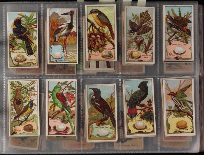 504 imageCollection in album with BDV Who's Who in Australian Sport (90 double sided cards, cat £400), American Tobacco Co 1901 Comic Scenes (30 mixed, cat £240), 1898 National Flags & Arms (14, cat £180), Snider & Abrahams 1912 Animals & Birds (40, £160). British Australasian Tobacco 1903 Flags of all Nations (14, cat £140). Wills 1910 Aviation (110 mixed, £330), 1912 Birds of Australasia (40, £70), 1913 Riders of the World (55 mixed, £100), 1913 Animals (cut-outs, 59/60, cat £70). Also misc cards inc 1920s Cricket (30), Amalgamated Press Wonderful London (16, £96) & Purina Grain Foods Wonders of Modern Aircraft (24 mixed, £120). Variable G-VF, odd duplicate. Total cat over £1900 = A$3800. (Image1) (Image2) (Image3) (Image4) (Image5) (Image6) (Image7) (Image8) (Image9) (Image10) (Image11) (Image12) (Image13) (Image14) (Image15) (Image16) (Image17) (Image18) (Image19) (Image20) (Image21) (Image22) (Image23) (Image24)