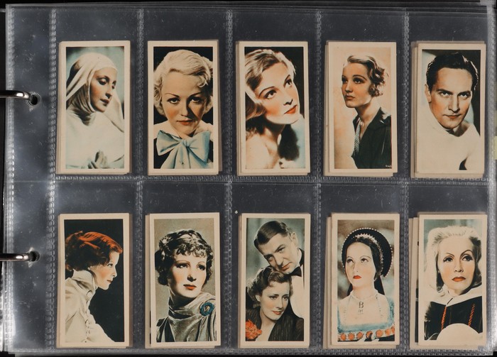 507 imageCollection in album with Anonymous 'Modern Movie Stars & Cinema Celebrities' (Teofani & Co London 1934) set of 48 (cat £60). Godfrey Phillips 1936 Annuals (Flowers, set of 50, £15), Famous Crowns (1938, £15), Film Stars (1934, £40), The Old Country (1935, £40), Ships that have made history (£20), Shots from the films (1934, medium size set of 48, £40), Nicholas Sarong & Co 1923-1925 Celebrities & Their Autographs (medium size set of 100, £120). Also Hoadley 1940 'Wild West' set of 50, cat £110. Nine sets in total, generally F/VF. 2022 CTCC cat £460 = A$900. (Image1) (Image2) (Image3) (Image4) (Image5) (Image6) (Image7) (Image8) (Image9) (Image10)