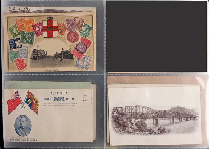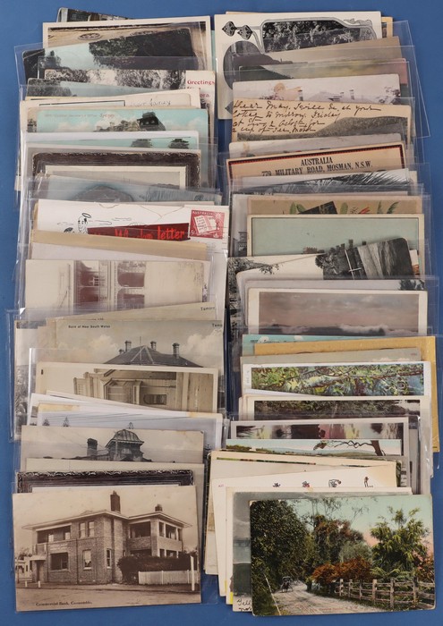 544 imageAustralia: General collection with NSW. Mostly pre-WWI. Sydney & Surrounds inc Blue Mountains, Hawkesbury River & Kuringai Chase. The Ladies inc Actresses & Glamour, Children, Australian Bush Scenes inc Artist Styles, Ships, Domestic/Wild Animals inc Cats, plus mixture of UK cards inc Comic, Artist Cards & City Scenes. Huge variety (see scans) inc NSW Zieher stamp card, Bulletin Australians at Cricket, 1901 Federal Greeting, Sydney Street Scenes, Railway Stations & others. Mostly F-VF Postally Used, wide range of cds & numeral cancels. (230) (Image1) (Image2) (Image3) (Image4) (Image5) (Image6) (Image7) (Image8) (Image9) (Image10) (Image11) (Image12) (Image13)
