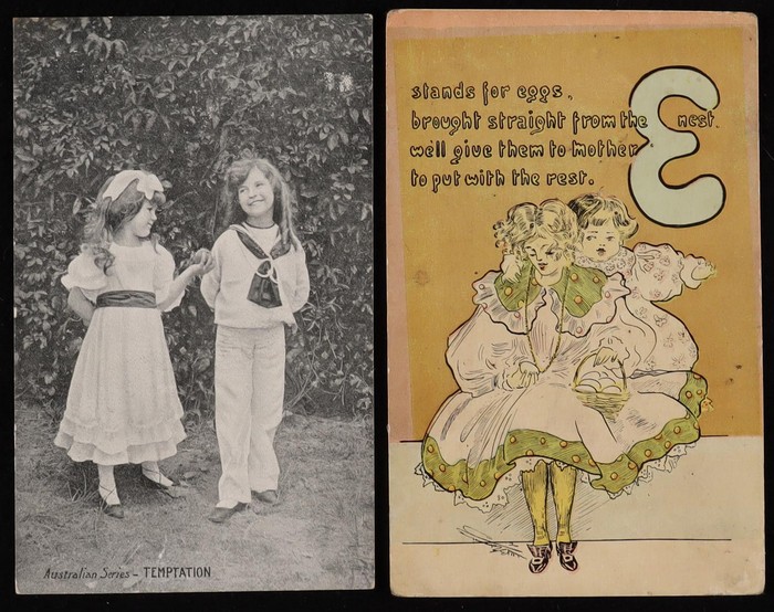 543 imageAustralia: Children sets of 6 (5) with Kerry & Co Child Studies No 1, H & B Mother's Darlings, Graphic An Accident & Its Consequences, H & B At The Dance & Australian series The Escape. Also Graphic Mere Man Nos 1-5 & Art Series odds (15). All B&W cards. Generally F-VF condition. Also alphabetical E, J & N colour cards. (53) (Image1) (Image2) (Image3) (Image4)
