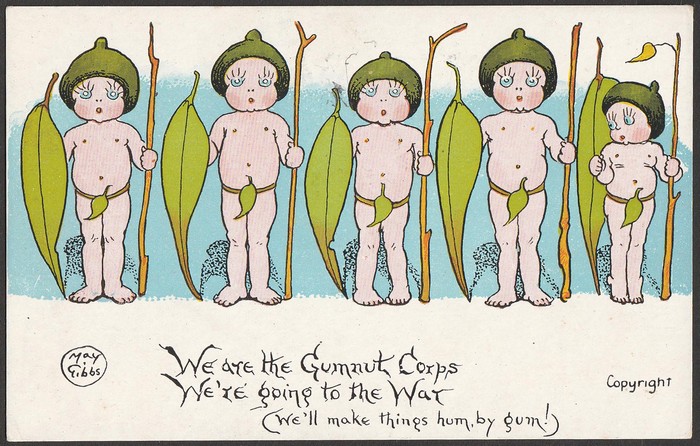 547 imageAustralian Artist: May Gibbs Gumnut Series No 5 'We are the Gumnut Corps'. Superb fresh UN. (P) (Image1) (Image2)