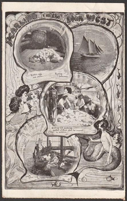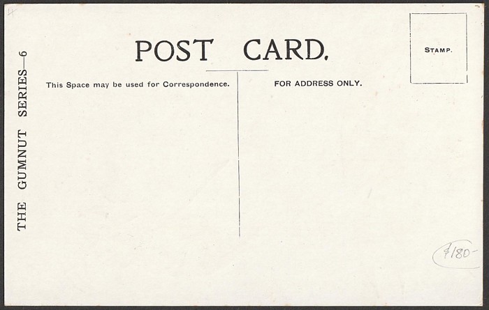 549 imageAustralian Artist: May Gibbs 'Pearling in the Norwest'. Light reverse foxing, slest cnr crease, attractive UN. 1906 very rare card illustrated by Gibbs while working as a staff illustrator at the Western Australian Periodical, with illustrated title banner, back divided. The accompanying article indicated this card sold for $480 in the past with only a single example recorded in Australian collections. Very rare. (P) (Image1) (Image2)