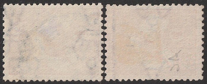 SIDEWAYS Crown pointing to right (interestingly this shows 2 partial wmks), Die II - Crown pointing to right (both viewed from front). GU-FU. SG 2a & 2da cat £600. ACSC 2Aaa & 3Aaa cat $950. Ex Sandy. (2). (P) (Image1) (Image2)
