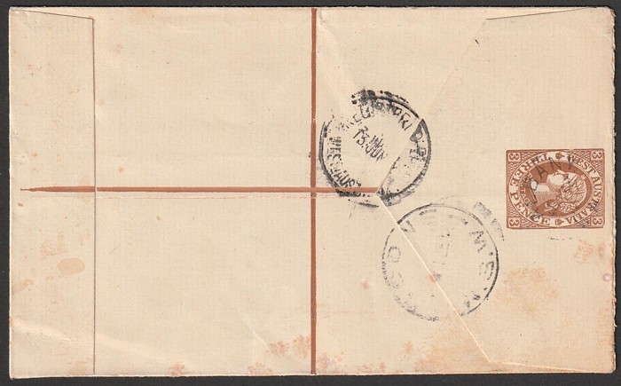 on a Western Australian QV 3d. Registered envelope with (RE4) with 'Albany JU 12, 13' scarce early cds. Addressed to prominent philatelist H.L. White at Scone. F-VF some spots. SG 2d(var). ACSC 3A. Rare mixed franking usage. (P) (Image1) (Image2)