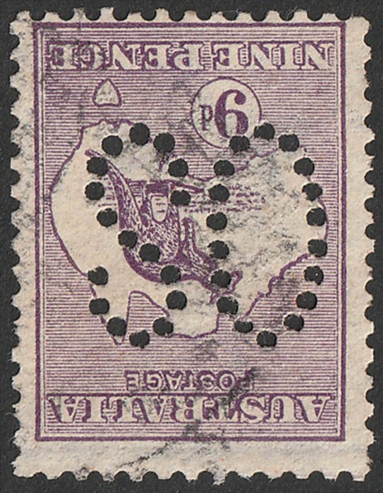 with variety wmk INVERTED. SG O23 cat £1200 = A$2400. ACSC 17Cabb cat $1500. Rare genuine. Ex Sandy. 2025 Ceremuga AIEP photo cert. (P) (Image1) (Image2)