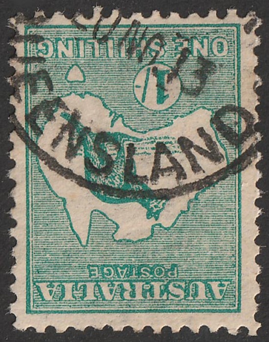 (aniline), wmk INVERTED Postally F-VFU with QLD No 13 cds. SG 11w (var). ACSC 30Ba cat $400 for normal shade postally Used. This shade is cat 20 times normal. Ex Sandy. (P)