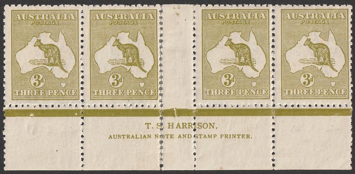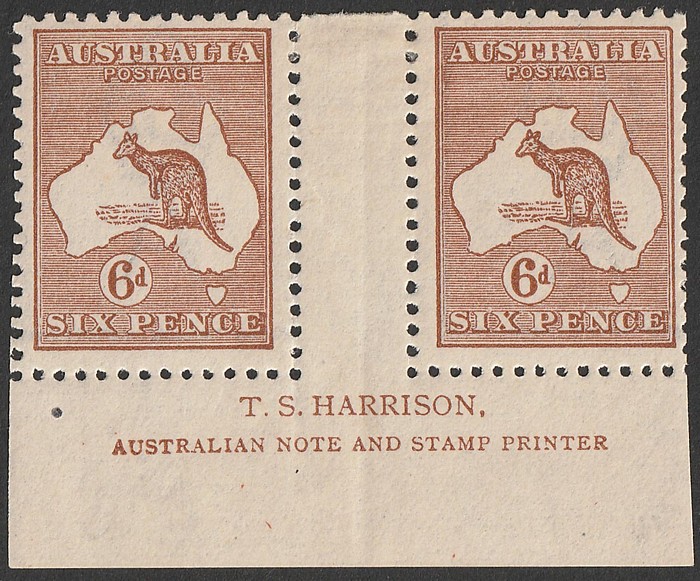 Harrison 2-line imprint pr, plate 4. F-VFM. SG 39b(var). ACSC 27(4)zc cat $1000. Ex Sandy. (2) (P) (Image1)