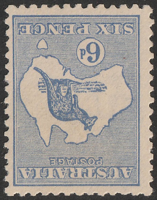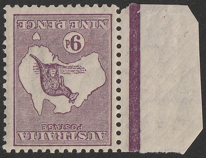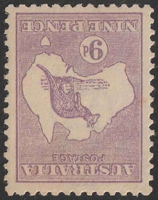 INVERTED. VF fresh M. SG 37cw cat £140. ACSC 13Ka cat $325 for common shade, should be double,$650 for scarce olive-green shade. Ex Sandy. (P) (Image1)