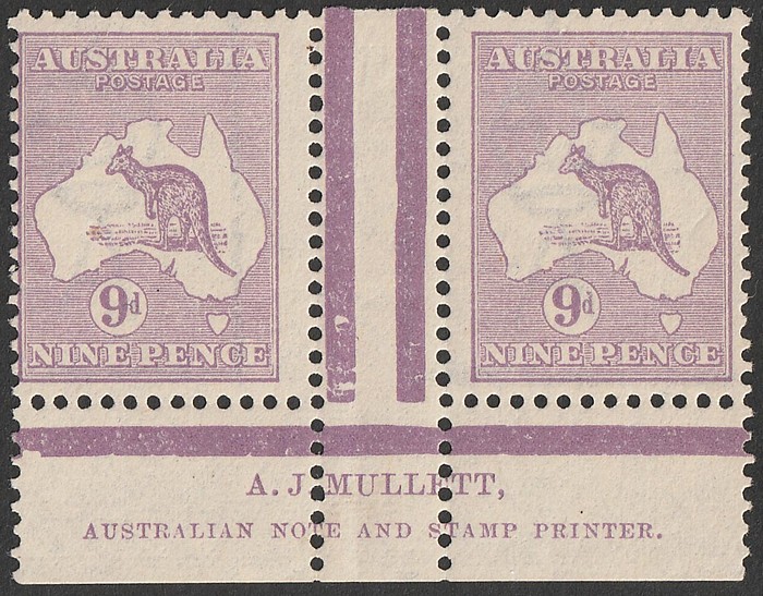 IIB, Mullett imprint pr, plate 3. Fresh F-VF MLH, 1 stamp natural inclusion. SG 39b(var). ACSC 27Bzd cat $500. Ex Sandy. (2) (P) (Image1)
