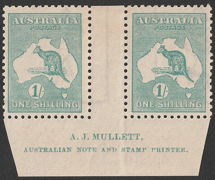 IIB Mullett imprint pr, plate 4. F-VF MLH, sl darker gum. SG 40b(var) cat £170 for M singles, plus premium for imprint. ACSC 33Azc cat $475. Ex Sandy. (2) (P)