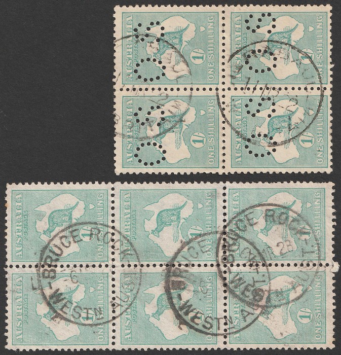 IIB, blk of 6 & blk of 4 perf OS. F-VFU, both with WA cds. SG 40 cat £100+. ACSC 33A & Ba cat $340+. Scarce multiples. Ex Sandy. (10) (Image1)