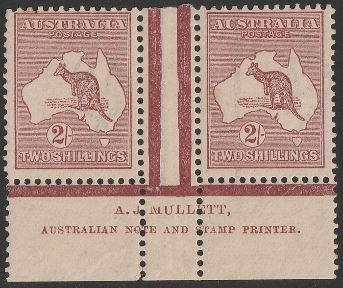 imprint pr, plate 2. F-VF MLH, sl darker gum. SG 74(var). ACSC 38A(2)zc cat $1000. Ex Sandy. (2) (P) (Image1)