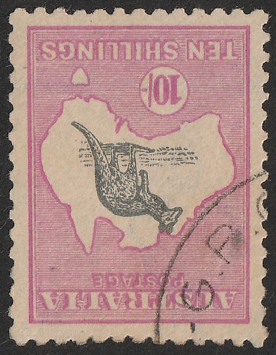 showing on the next stamp. CTO with GPO Melbourne 14 SE 30 cds. SG 51 cat £440+++. ACSC 48Dwa with variety cat $1250+++, plus huge premium for very rare multiple. Ex Sandy. (P) (Image1)