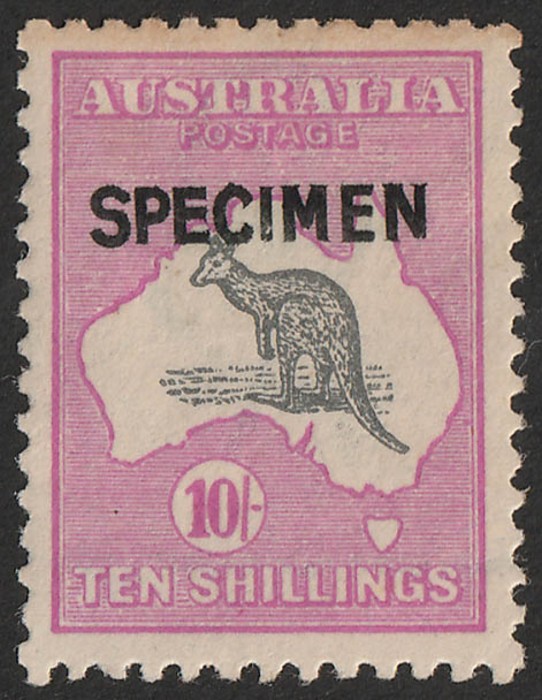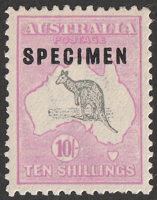 aniline-pink opt SPECIMEN type B. VF MLH, sl tropicalised perfs at top, W/C & nice colour. SG 43s. ACSC 48Bx cat $600. (P) (Image1)