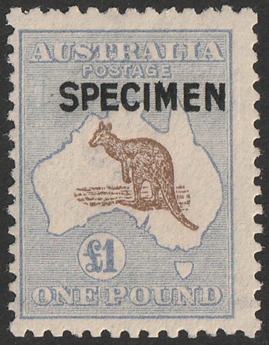 pale blue opt SPECIMEN, type B. Fresh F-VF MLH. SG 44s cat £3000 for normal. ACSC 52Dx cat $1000. Ex Sandy. (P) (Image1)
