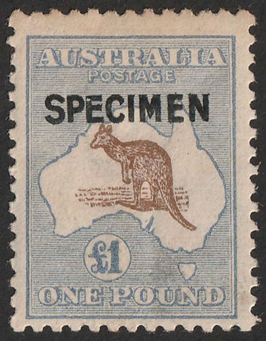 pale blue opt SPECIMEN type B. VF MLH, sl tropicalised perf at top. SG 44s. ACSC 52Dx cat $1000 (P) (Image1)