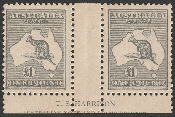 Harrison imprint pr. As ACSC notes 'this printing was nearly always trimmed closely at base, resulting in most or all of the second line of the imprint being missing'. F-VF MLH, uneven suntanned gum colour. SG 75(var). ACSC 53Aza cat $6250 (for