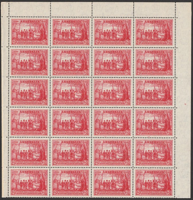 Platypus CofA wmk, perf 14x15 LL cnr no imprint blk of 4 (ACSC 206 zg cat $225). 1948 Defs 2/- Crocodile & 2/6 Aborigine CofA wmk, both no imprint blks of 4 (ACSC 263 ze, 265 zd cat $350). Also 1/6 black Hermes Authority imprint blk of 4 with extra
