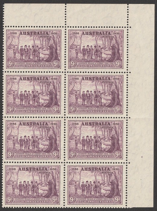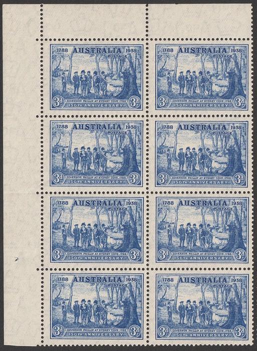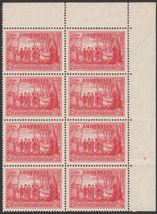 Die II, gutter blk of 8 with perf extension from top centre of sheet showing comp plate no. 4. Stamps VF fresh MNH, MLH in selvedge only. SG 184(var). ACSC 188zh cat $2000. Rare. (P) (Image1)