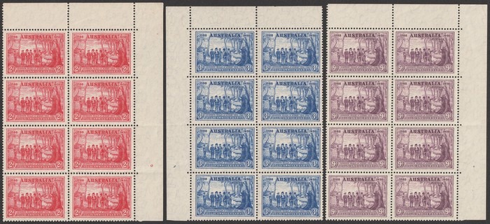 2d-9d inc marginal blks of 8. Superb MNH. SG 193-195 cat £320. ACSC 175-177 cat $480. (24). (Image1) (Image2)