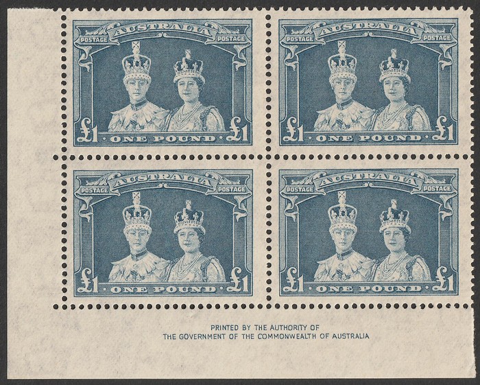 thick paper Authority imprint blk of 4. VF fresh MNH. SG 177 cat £200. ACSC 214Az cat $375. (4) (Image1)