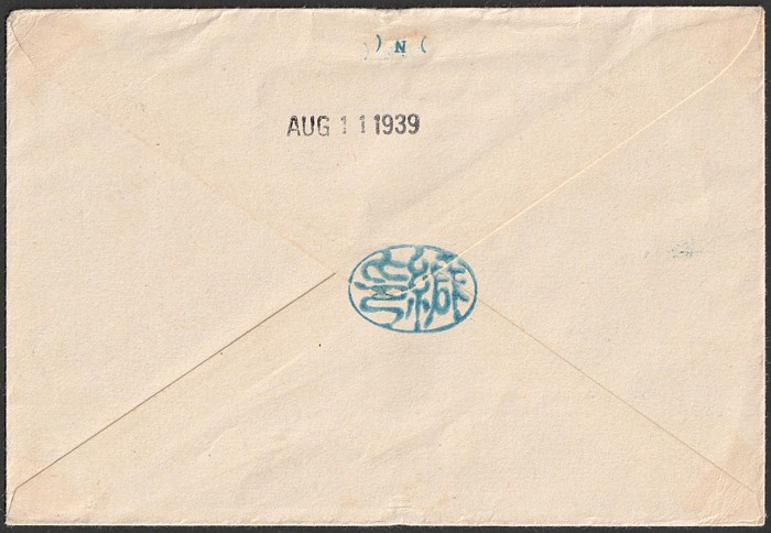 1480 image1956 Wreck Mail usage of Airmail cover Sydney to Samoa, stamps washed off from immersion in water, S/C cachet in violet 'SOILED MAIL EX VASU' applied on arrival in Apia. Brian Peace states on pg 322 '29 pieces of mail were recovered'. (Image1) (Image2)