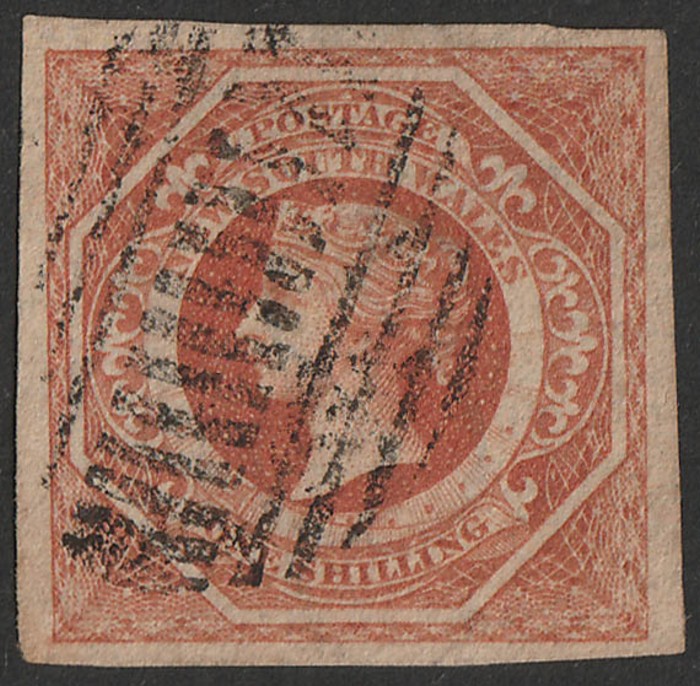 orange-yellow. F-VFU, 3½ margins. Scott 20 cat US$1000. SG 80 cat £750. (P) (Image1)