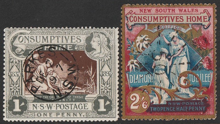 1/- & 2/6, 2nd '50' ray cancel of Albury. Superb U 1st Parkes cds. Scott B1-B2 cat US$290. SG 280-81 cat £325. (2) (P) (Image1)