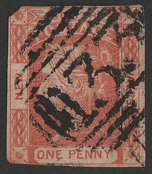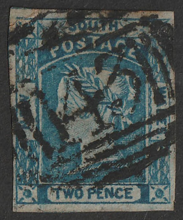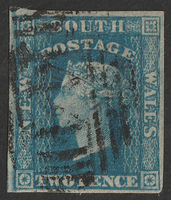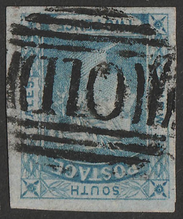 143 of Narellan type 1A (RRRR) crisp comp strike on 1854 QV Laureate 2d blue. Illustrated in Freeman. (P) (Image1)