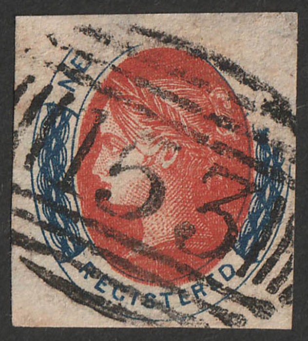 153 of Baulkham Hills type 1A (RRRR) comp strike on 1856 QV Registered imperf. Illustrated in Freeman & possibly UNIQUE. (P) (Image1)
