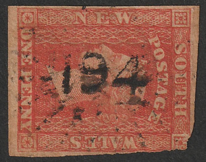 Postmark: Numeral 108 of Murrumbah (RRRRR, open May 1861 to Jul 1862) comp strike on QV 2d Sideface. One of only 2 recorded, the other illustrated in Freeman. (P)