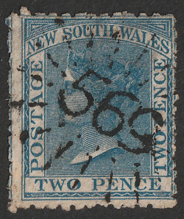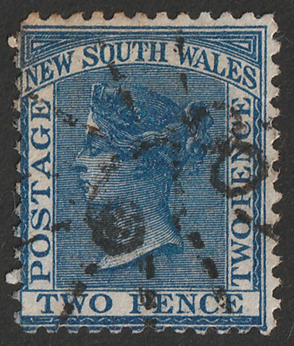 Postmark: Numeral 402 of Murrambah (RRRR, closed 1878) near comp strike on 1870s QV 2d blue. (P)