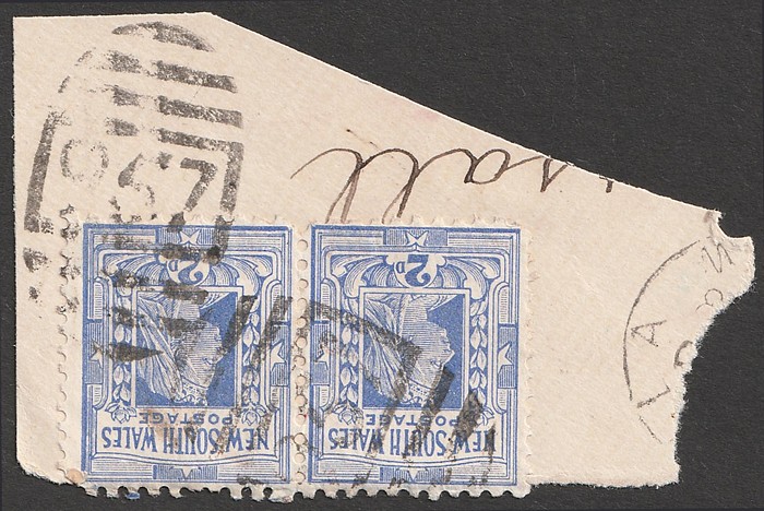 1118 of Gerrym Berryn (RRRR, closed 1912) 2 bold strikes tying 1897 1d Shield & 2d QV to small piece. (P) (Image1)