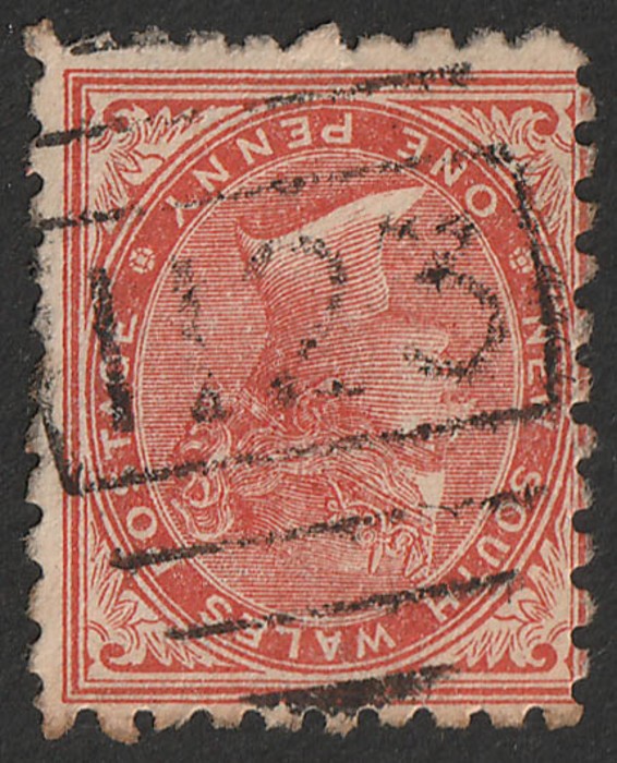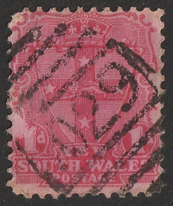 1123 of Naremburn (RRRRR, closed 1886) comp strike on 1880s QV 1d red. An extremely rare cancel, illustrated in Freeman. (P) (Image1)