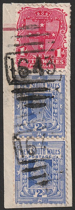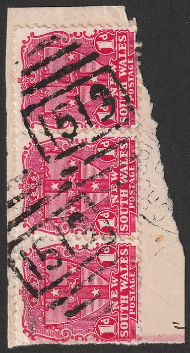 1519 of Coutt's Crossing (RRRR) 2 F-VF strikes tying 1897 1d Shield to small piece. (P) (Image1)