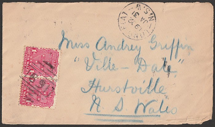 1691 of Long Flat (RRRR) tying 1d Shield pr to 1902 cover to Hurstville with tying cds at UR. (P) (Image1) (Image2)