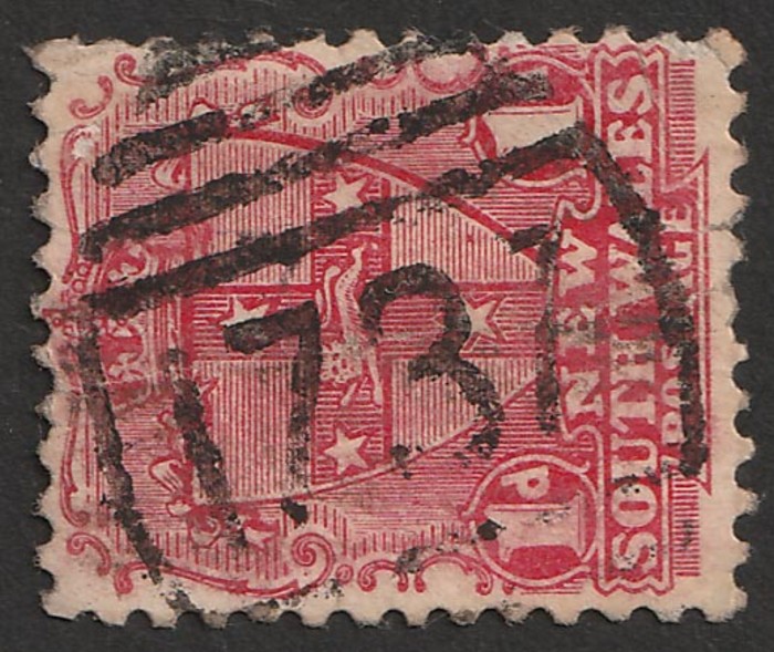 1550 of Jackson's Waterholes (RRRRR, closed 1909) bold Sl fuzzy strike on 1888 Centennial 1d. Extremely rare, illustrated in Freeman. (P) (Image1)