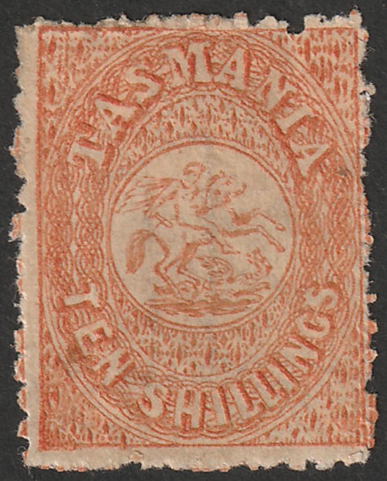 Dragon 10/- orange Postal Fiscal imperf. VFM , original gum, 4 margins. Scott AR5a cat US$1800. SG F6 cat £2000. Very rare genuine Mint as almost all offered are cleaned F/C. 2024 Ceremuga AIEP photo cert. (P) (Image1)