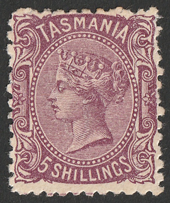 5/- purple, wmk TAS, perf 11½. VF fresh M with nice original gum. Scott 59 cat US$375. SG 149 cat £450. Rare genuine mint. 2025 Ceremuga AIEP photo cert. (P)