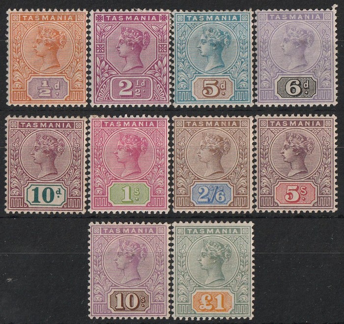 set ½d-£1, wmk TAS. VF fresh M/MLH, nice colours. Scott 76-85 cat US$1023. SG 216-225 cat £850. Scarce set. (10) (P) (Image1)
