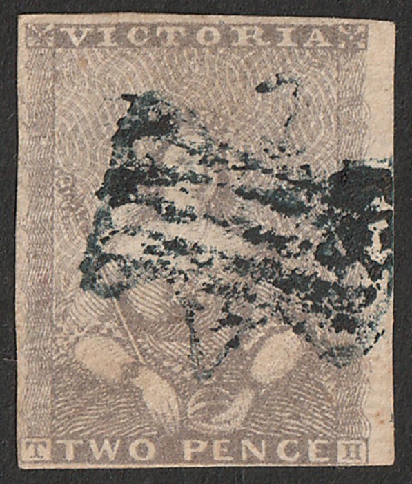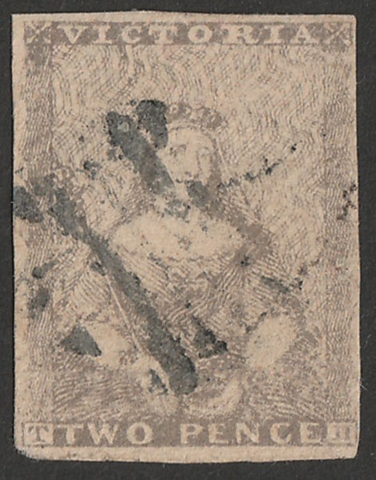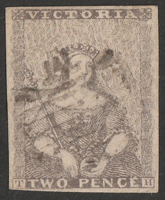2d deep grey, Ham printing, 'vertical drapes'. VFU, 4 margins, oval pmk. Scott 7a cat US$200. SG 16a cat £275. (P) (Image1)