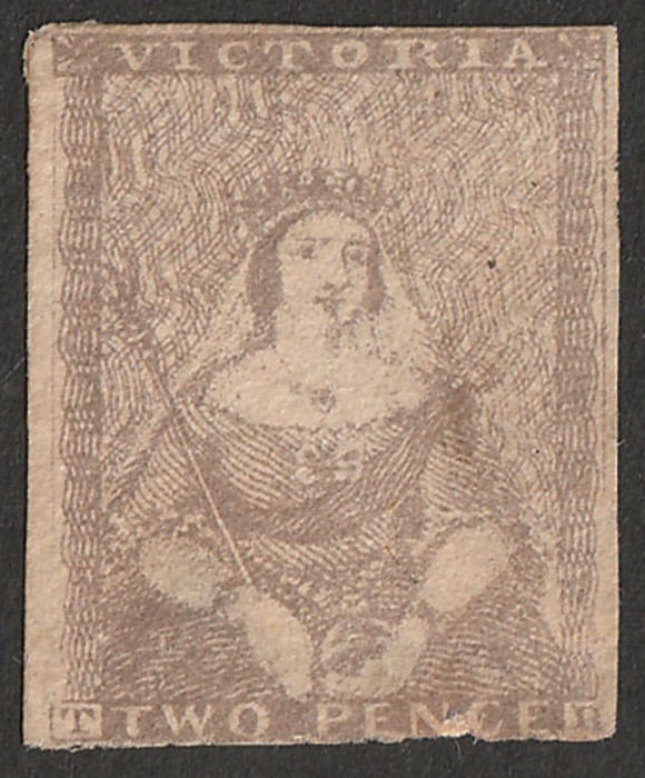 2d brown-lilac, Ham printing, 'Vertical Drapes'. Fresh UN, 3 margins, small thins etc at base. Scott 7 cat US$7250. SG 16b cat £8000. Extremely rare genuine unused & respectable space-filler. 2024 Ceremuga AIEP photo cert. (P) (Image1)
