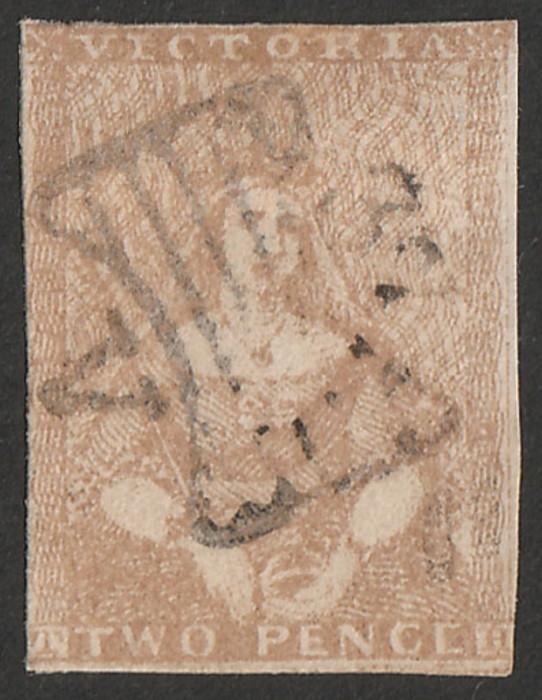 2d pale dull brown, Ham printing, 'vertical drapes'. F-VFU, 3½ margins, black Butterfly pmk. Scott 8 cat US$200. SG 17b cat £200. (P) (Image1)