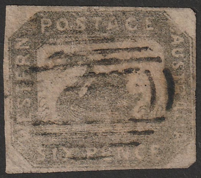grey-black lithographed, imperf. VFU, 4 margins, barred oval pmk. Scott 4 cat US$700. SG 19 cat £600. (P) (Image1)