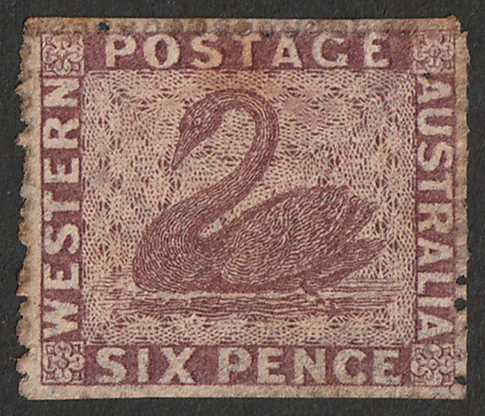 purple-brown, wmk Swan, intermediate perf 14-16. VF UN. Scott 23 cat US$1200. SG 36 cat £1200. Rare in unused condition. 2025 Ceremuga AIEP photo cert. (P)