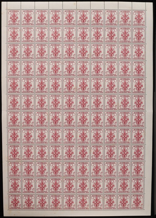 Olympics 4d sheet of 120. Scattered mostly light tropicalisation effecting around 40 stamps. ACSC 332 A/B cat $120. (120) (Image1)