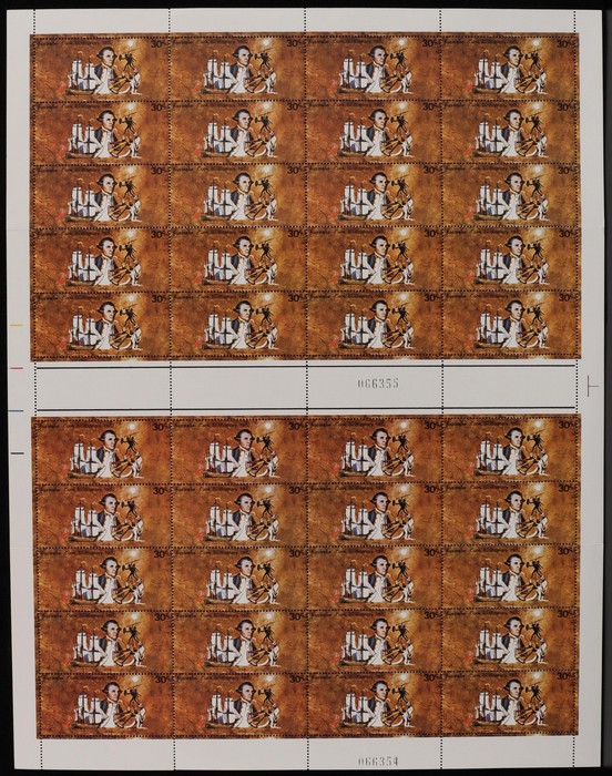 Bi-Centenary 30c comp sheet of 50 with Autotrons at left & both black sheet numbers. Fresh MNH. ACSC 527 z za zb cat $85. (Image1)