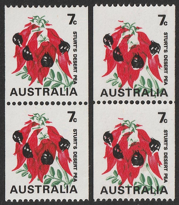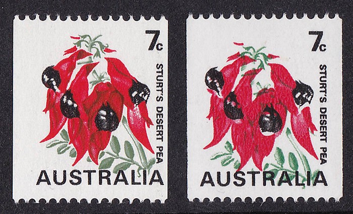 Sturt's Desert Pea error 'buff omitted & green misplaced' vert pr. VF fresh MNH, normal to compare. SG 468bbb cat £450. ACSC 535ce cat $600. (P) (Image1)