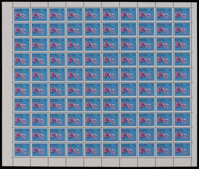 Mauve Stinger sheet of 100. Fresh MNH. ACSC 640 cat $20. (Image1)
